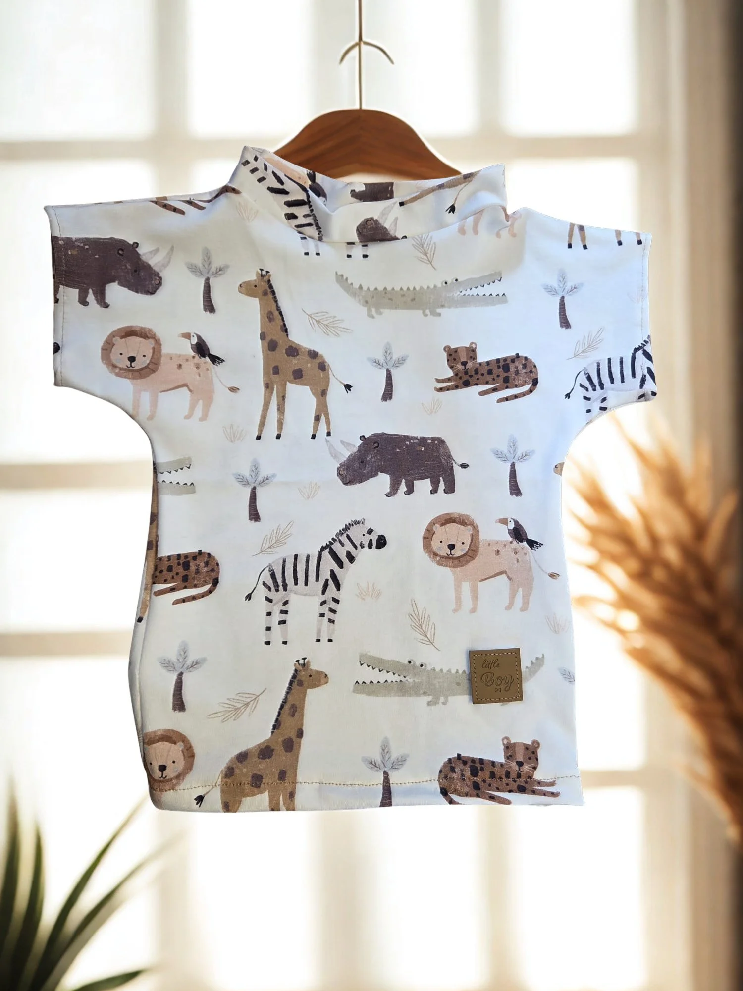 Leicht und weich, mit ruhigem Tiermuster in warmen Naturtönen. Für kleine Alltagsmomente.