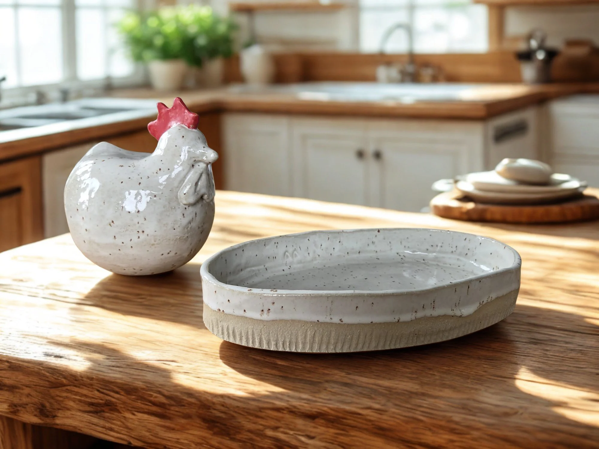 Flach und ruhig geformt, mit weichem Rand und gesprenkelter Glasur. Für kleine Snacks oder als stilles Objekt im Alltag.