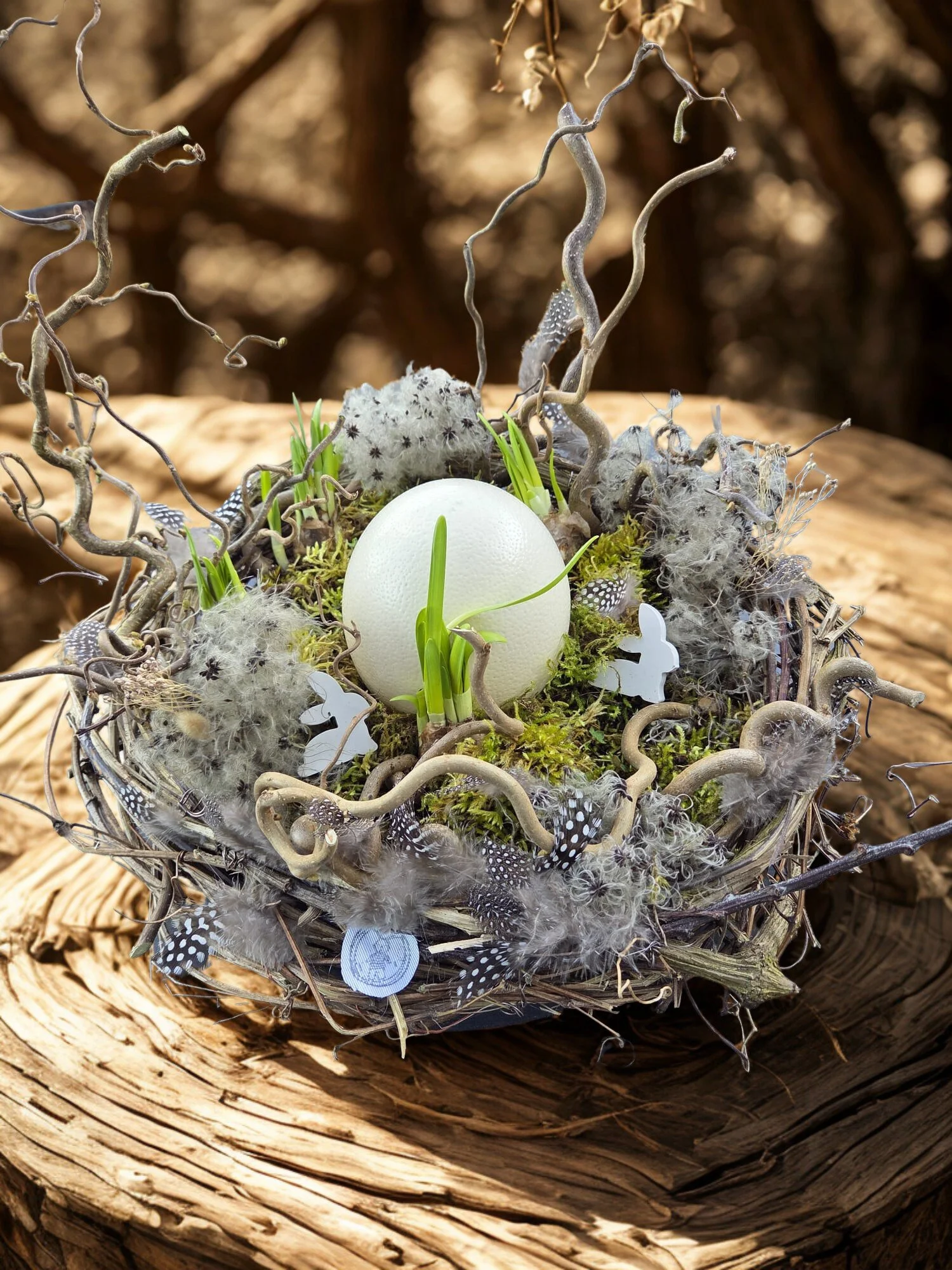Ein liebevoll handgefertigtes Osternest aus natürlichen Materialien