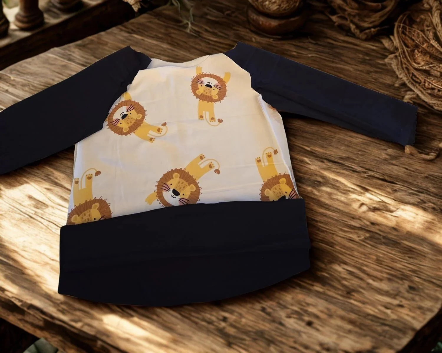 Weicher, handgenähter Pullover mit fröhlichen Löwensymbolen - perfekt für kleine Abenteuer voller Mut